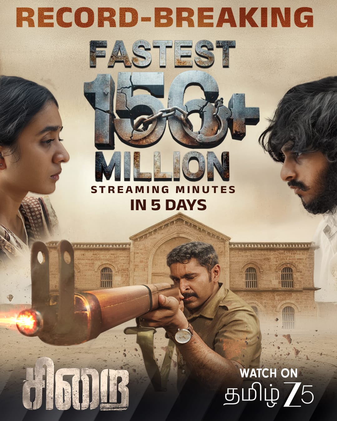 ஜீ 5 ஓடிடி தளத்தில் சமீபத்தில் வெளியான “சிறை” படம், மிகக் குறுகிய காலத்திலேயே 156 மில்லியன் பார்வை நிமிடங்களை கடந்து புதிய சாதனையை படைத்துள்ளது. திரையரங்குகளில் வெளியாகி பெரும் வெற்றியைக் குவித்த பிறகு, ஓடிடி தளத்தில் வெளியான இப்படம் அங்கும் முத்திரை பதித்தது,உண்மைச் சம்பவத்தை அடிப்படையாக கொண்ட அதன் ஆழமான கதைக்களம், வலுவான நடிப்பு மற்றும் உணர்வுபூர்வமான உருவாக்கம் காரணமாக ரசிகர்கள் மத்தியில் பெரும் வரவேற்பைப் பெற்றுள்ளது. செவன் ஸ்கிரீன் ஸ்டுடியோ சார்பில் தயாரிப்பாளர் எஸ்.எஸ்.லலித் குமார் தயாரிப்பில் உருவான இப்படத்தை, அறிமுக இயக்குநர் சுரேஷ் ராஜகுமாரி எழுதி இயக்கியுள்ளார்.