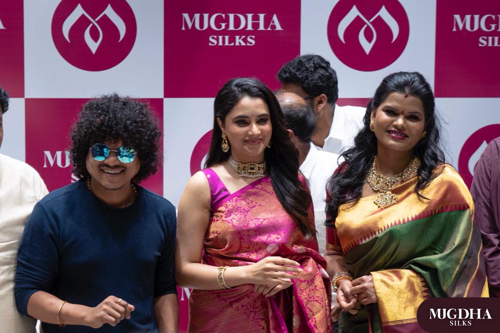 The most gorgeous and happening actress Priyanka Mohan and comedian Pugazh, the favorite cherry-pick of crowds, inaugurated the 27th store of Mugdha Silks at T. Nagar in Chennai. The occasion also witnessed the presence of Mugdha Art Studio Sashi Vangapalli, founder and chief designer.