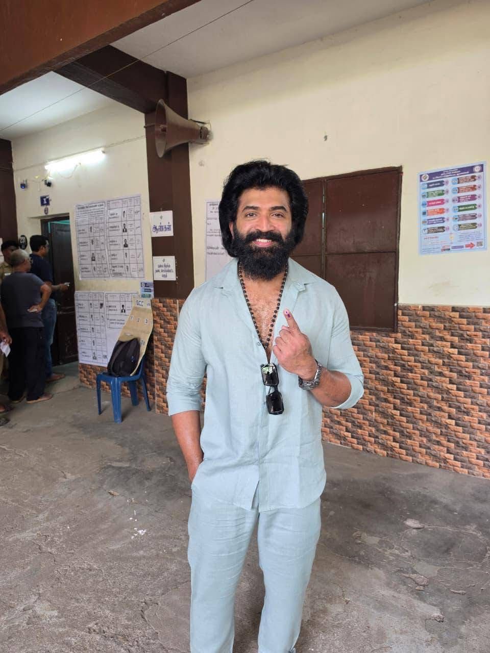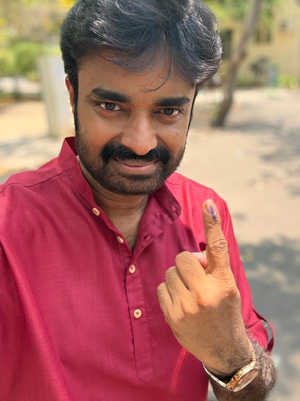 DirVijay casted his vote at Vidyodaya School , Valluvarkottam, Chennai