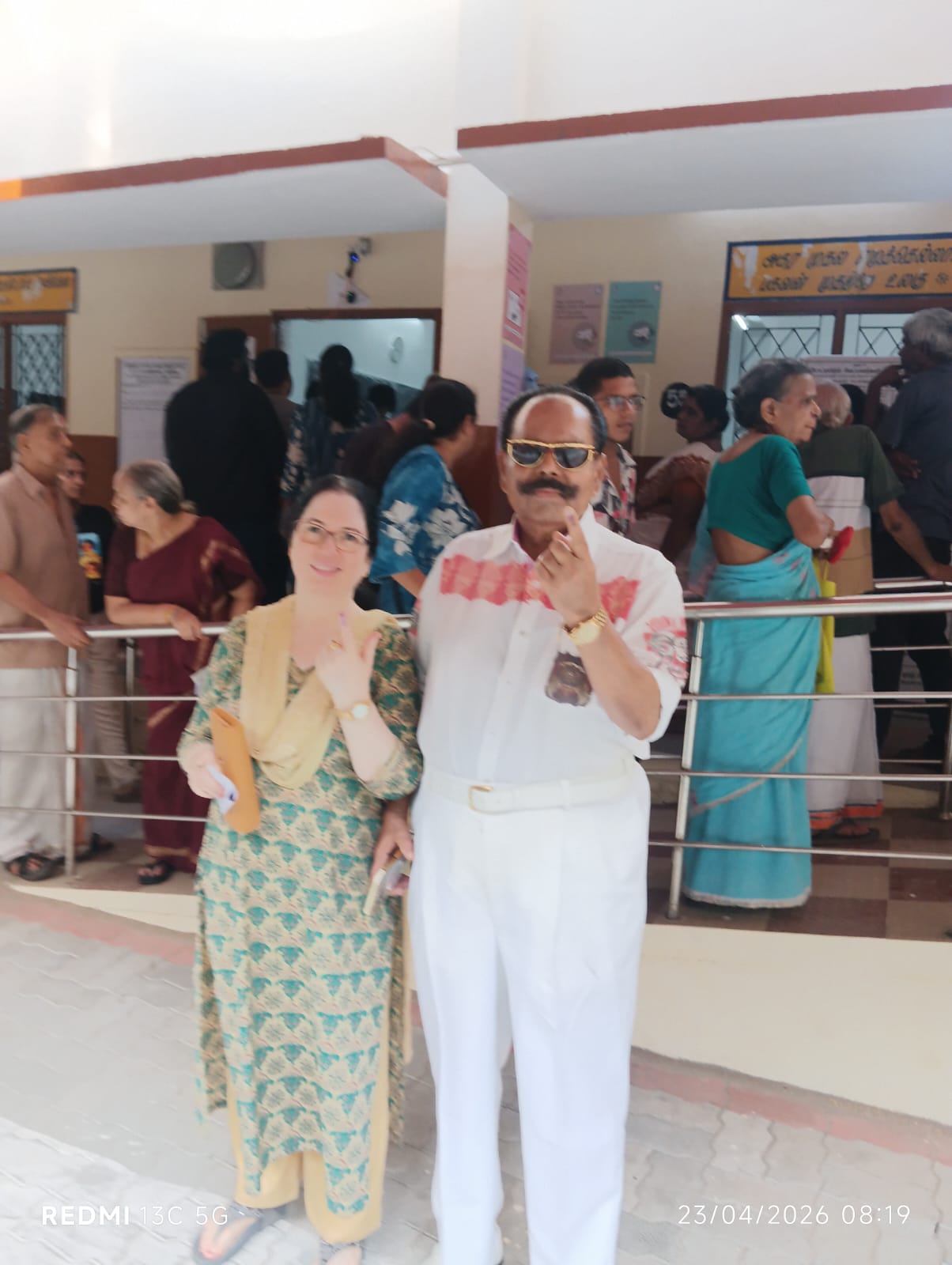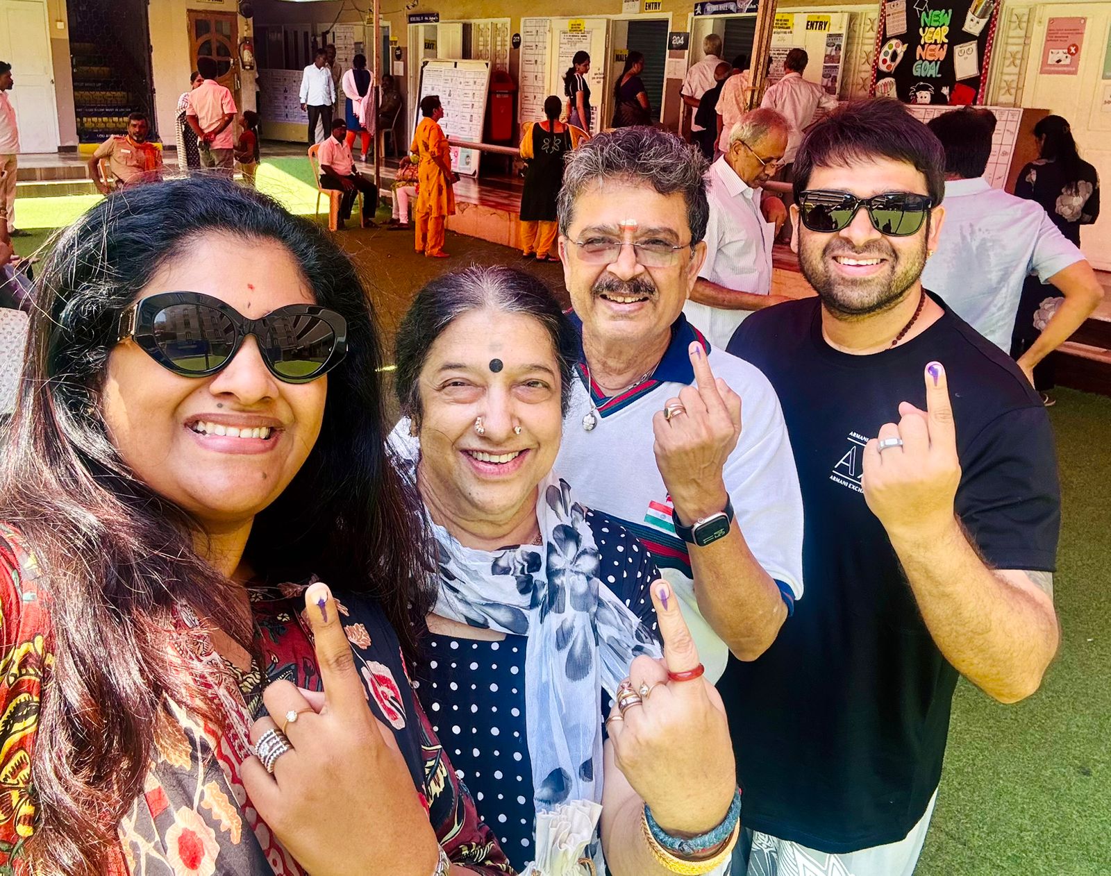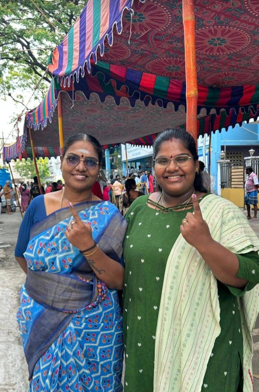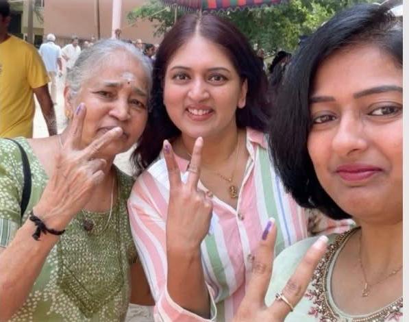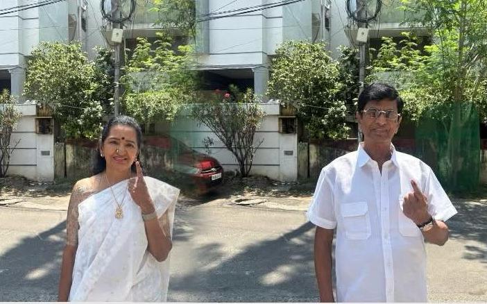 நடிகர் எஸ்வி சேகர் மனைவி மகன் அஷ்வின் சேகர். மருமகளுடன் மந்தவெளிப்பாக்கம் செயிண்ட் ஜான் பள்ளியில் வாக்களித்தார்.