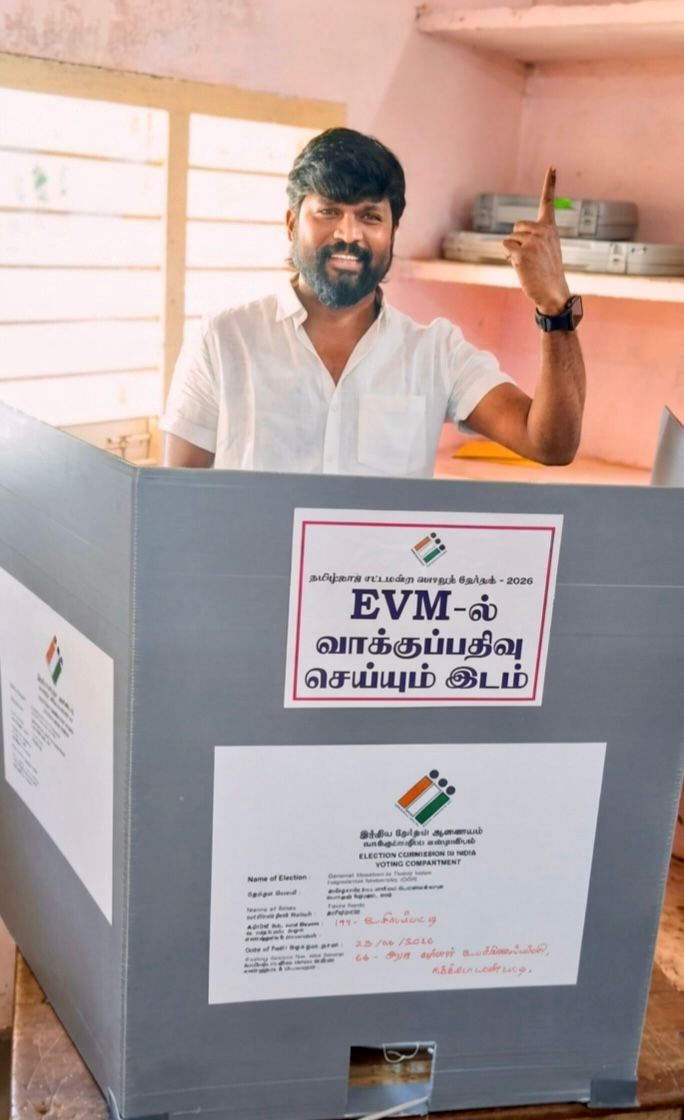 மதுரை மாவட்டம் உசிலம்பட்டியில் தனது வாக்கை பதிவு செய்தார் நடிகர் சவுந்தரராஜா