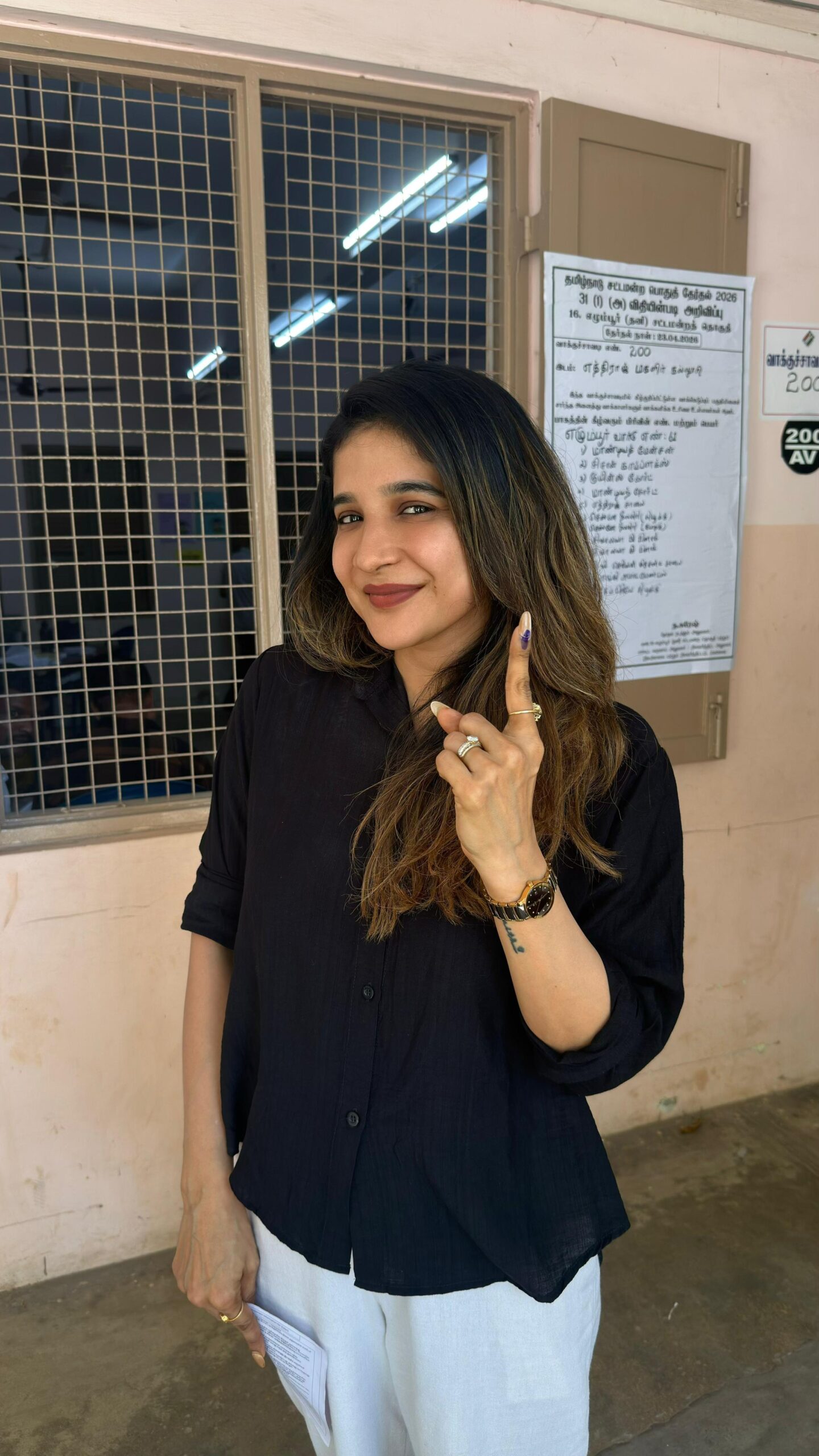வரலட்சுமி சரத்குமார் அவர்கள் சென்னை கோட்டூர்புரம் AMM பள்ளியில் தனது வாக்கை பதிவு செய்தார்.