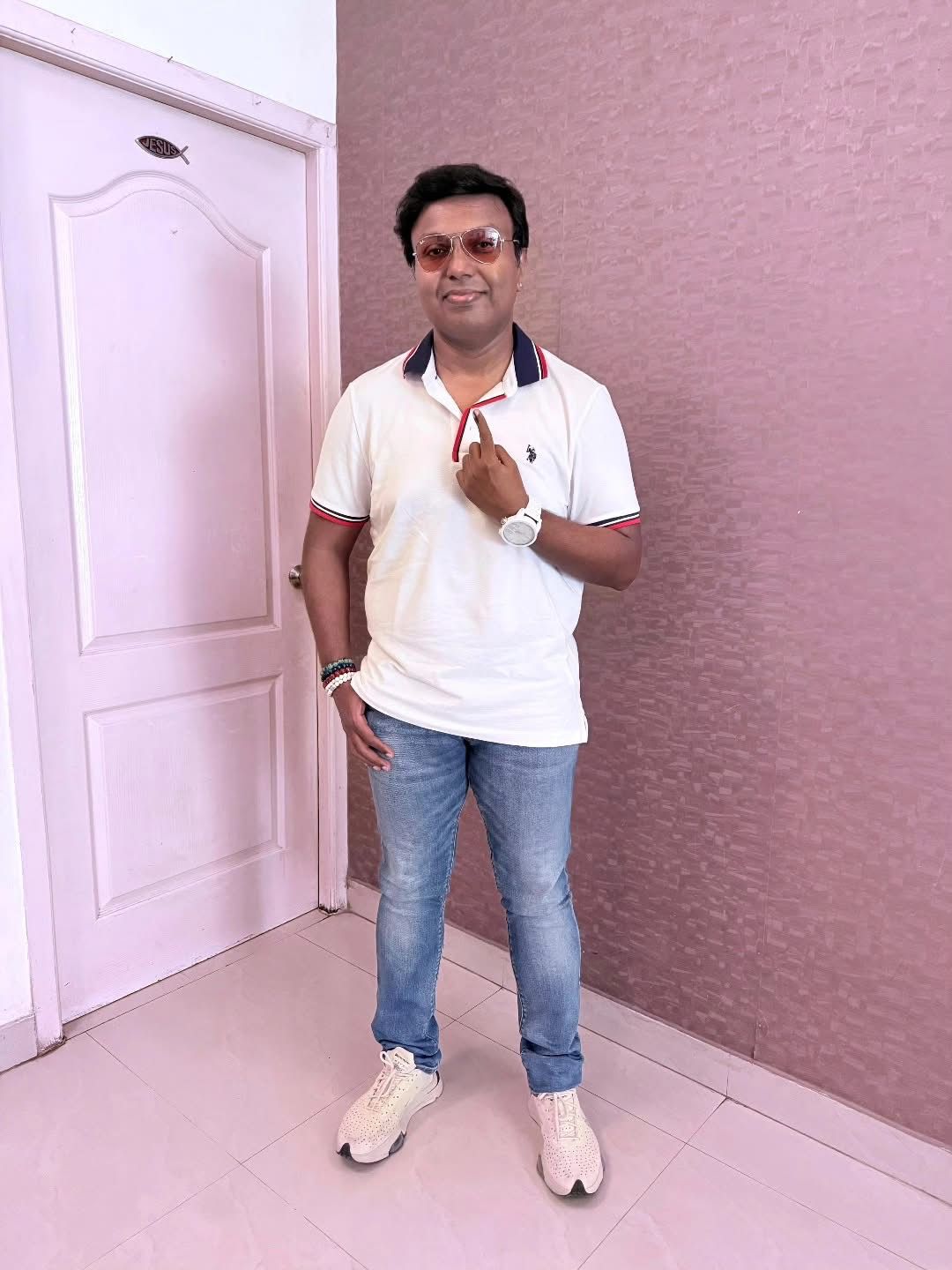 Actor/Producer ALUdhayaa cast his vote at Chennai Primary School, Arcot Road, Kodambakkam