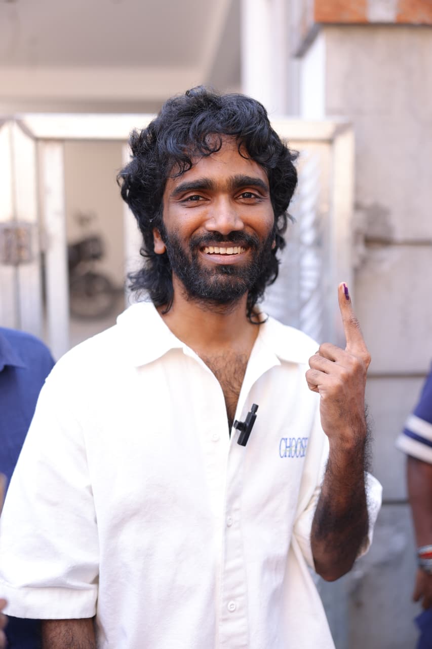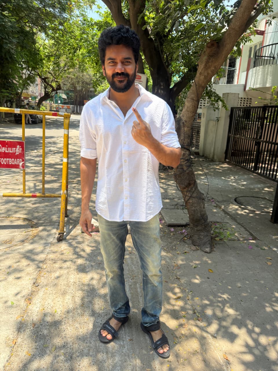 Actor Kavin cast his vote at The Hindu Senior Secondary School Adyar