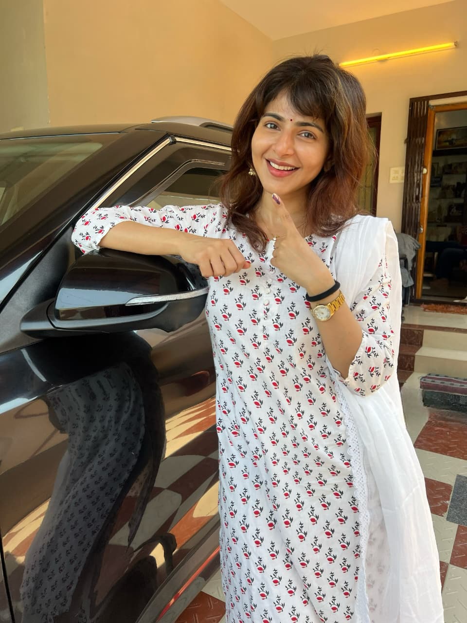 நடிகை ஐஸ்வர்யா மேனன் ஓட்டு போட்டார்