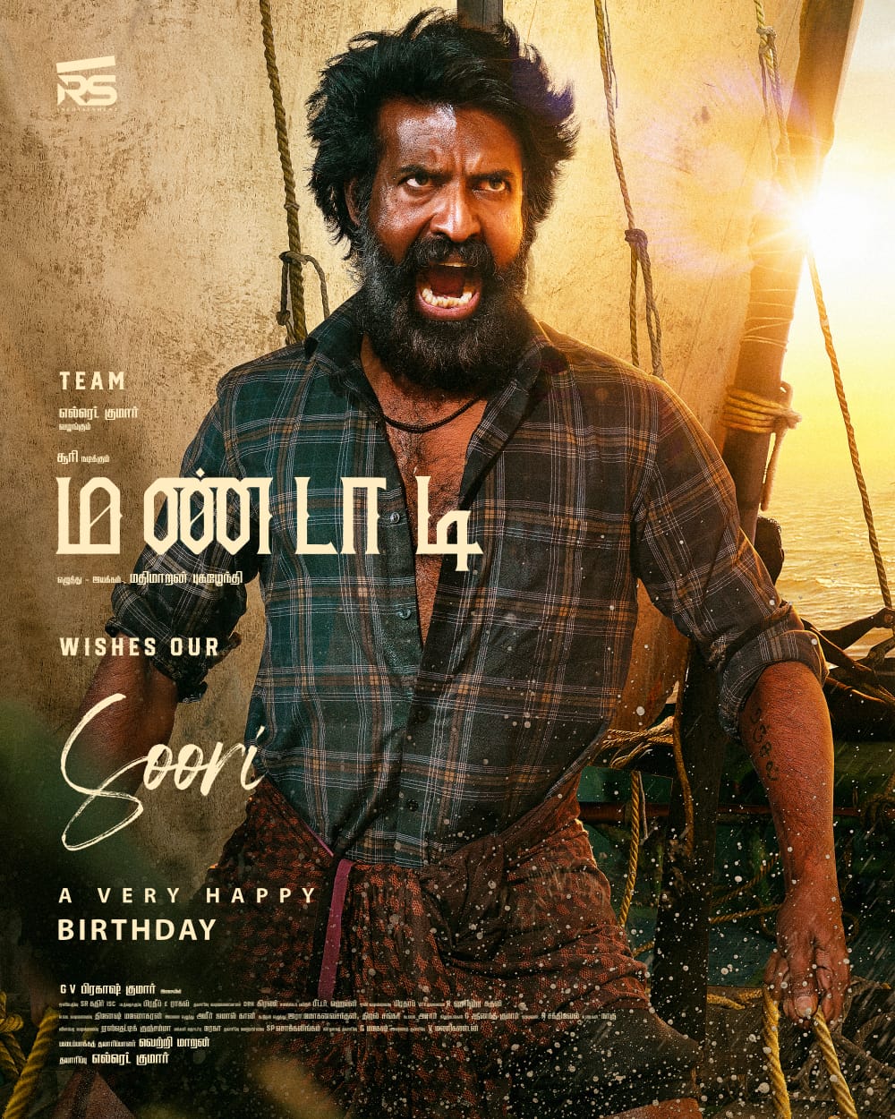 மதிமாறன் புகழேந்தி இயக்கத்தில் சூரி நடித்து வரும் புதிய படம் மண்டாடி. இதில் மகிமா நம்பியார் ஹீரோயின் ஆக நடிக்க, சத்யராஜ் முக்கிய கேரக்டரில் நடிக்கிறார். இந்தப் படத்துக்கு எஸ்.ஆர். கதிர் ஒளிப்பதிவு செய்ய, ஜி.வி.பிரகாஷ் குமார் இசையமைக்கிறார். இந்தப் படத்தை ஆர். எஸ்.இன்போடேயின்மென்ட் சார்பில் எல்ரெட் குமார் தயாரிக்கிறார். இதன் படப்பிடிப்பு ராமநாதபுரம் பகுதியில் நடைபெற்று வரும் நிலையில், சூரியன் பிறந்த நாளை ஒட்டி படக்குழு போஸ்டரை வெளியிட்டுள்ளது. அதில் மிரட்டல் லுக்கில் சூரி இருக்கிறார்.