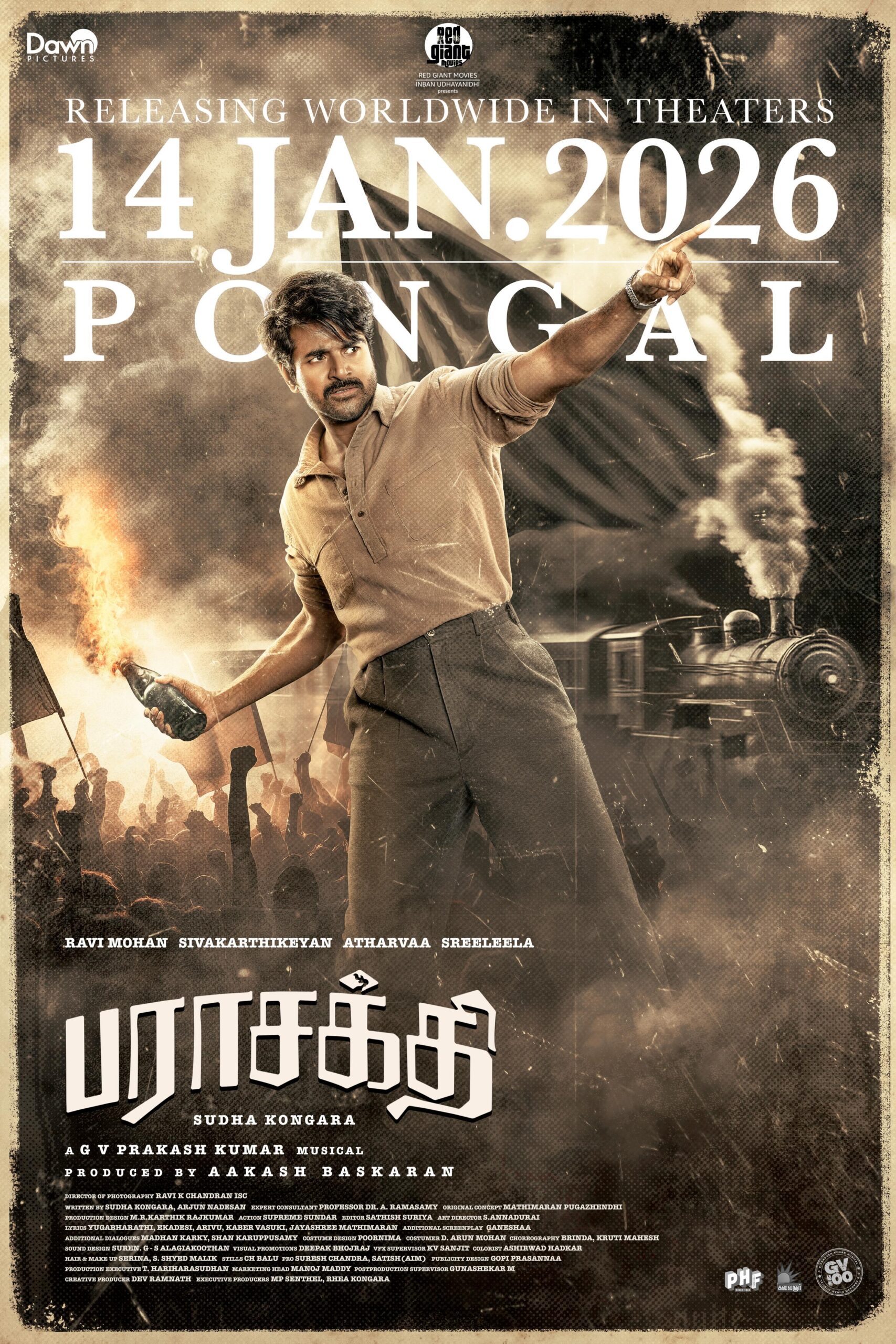 சுதா கொங்கரா இயக்கத்தில் உருவாகி வரும் ‘பராசக்தி’ படமும் பொங்கலை ஒட்டி ஜனவரி 14-ம் தேதி வெளியாகும் என அறிவிக்கப் பட்டுள்ளது.டான் பிக்சர்ஸ் சார்பில் ஆகாஸ் பாஸ்கரன் தயாரித்துள்ளது. இந்த படத்தை ரெட் ஜெயன்ட் மூவிஸ் வெளியிடுகிறது.